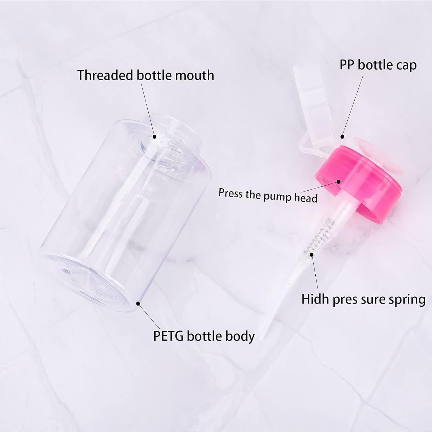 Traditional open-top bottles are prone to spills and high rates of chemical evaporation. This 150ml capacity pump bottle features a secure screw-top lid and a high-quality internal valve that seals the liquid when not in use. The compact size is ideal for mobile technicians or crowded salon stations, providing enough volume for multiple services without taking up excessive space. It is specifically built to withstand harsh chemicals like acetone, alcohol, and monomer.
