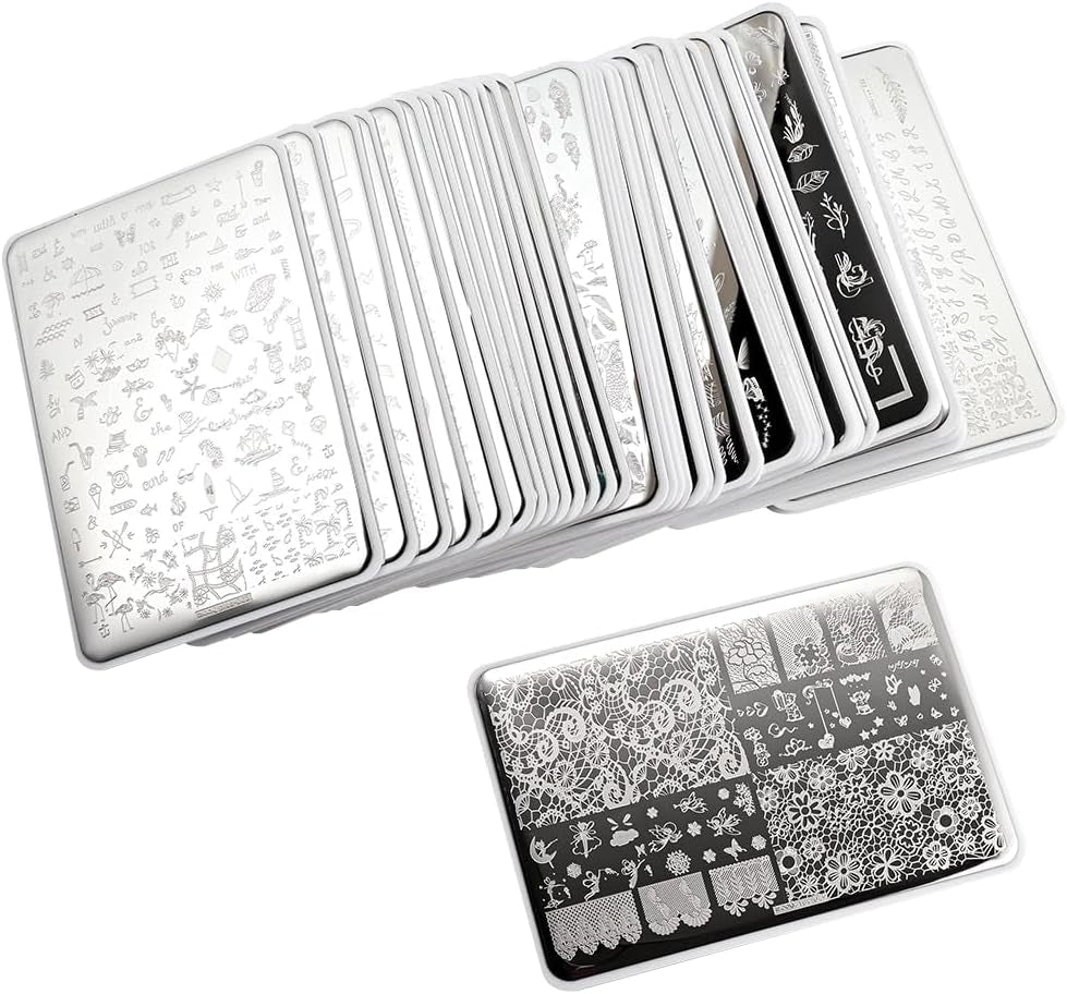 Elevate your nail art with high-definition etched designs. These large-format stamping plates feature a wide variety of patterns, from geometric lines to intricate florals, allowing you to achieve perfect quality art in seconds.