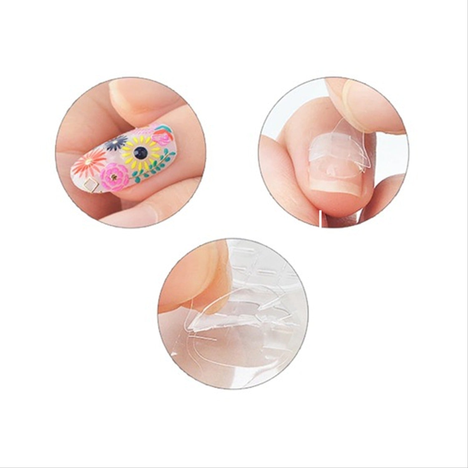 - Double-sided adhesive provides instant nail attachment