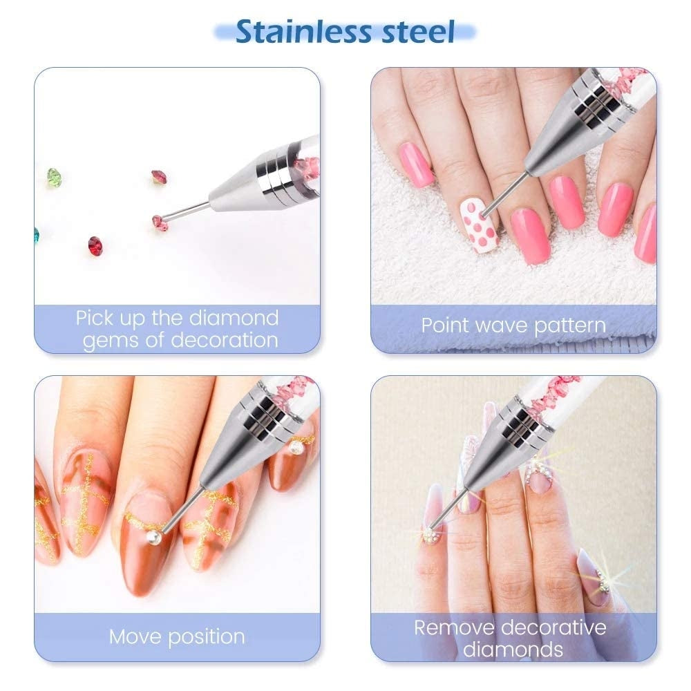 The ultimate tool for crystal art, featuring a replaceable wax head on one end and a stainless steel tip on the other. This professional picker allows you to position stones with the wax end and make micro-adjustments or press them into gel with the metal end.